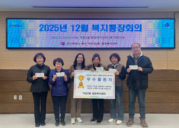 ºÎ»ê ºÏ±¸ ´öõ2µ¿ ÇàÁ¤º¹Áö¼¾ÅÍ(µ¿Àå ¹®¿ÁÈñ)´Â Áö³ 10ÀÏ, 2025³â ÇϹݱ⠿ì¼ö ¸í¿¹»çȸº¹Áö°ø¹«¿øÀ» ¼±¹ßÇÏ°í °Ý·ÁÇß´Ù°í ¹àÇû´Ù.