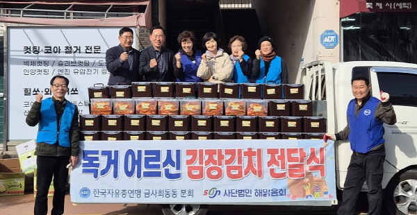 Çѱ¹ÀÚÀ¯ÃÑ¿¬¸Í, (»ç)ÇØ¸¼À½È¸ ȸ¿øµéÀº °Ü¿ï³ª±â Áغñ¿¡ ¾î·Á¿òÀ» °Þ°í ÀÖ´Â ÀÌ¿ôµé¿¡°Ô µû¶æÇÑ ¿Â±â¸¦ ÀüÇϰíÀÚ ¿ÃÇØµµ Á¤¼ºÀÌ °¡µæÇÑ ±èÀå±èÄ¡¸¦ ÁغñÇß´Ù.