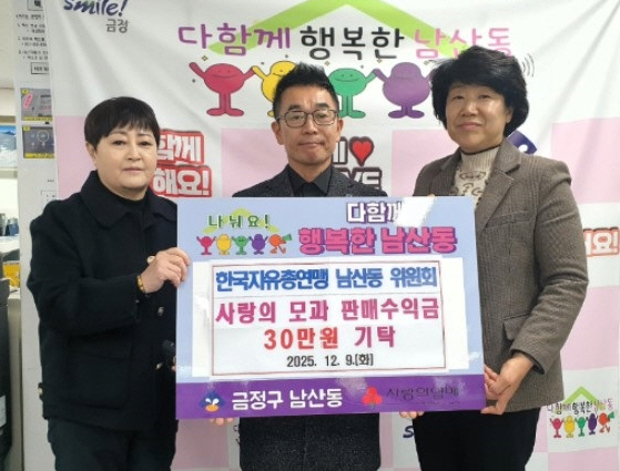 ºÎ»ê½Ã ±ÝÁ¤±¸ ³²»êµ¿ ÇàÁ¤º¹Áö¼¾ÅÍ´Â Áö³ 9ÀÏ Çѱ¹ÀÚÀ¯ÃÑ¿¬¸Í ±ÝÁ¤±¸Áöȸ ³²»êµ¿À§¿øÈ¸(À§¿øÀå ±èºÀÇö)¿¡¼ ¡¸»ç¶ûÀÇ ¸ð°ú ÆÇ¸Å ¼öÀͱݡ¹ 30¸¸ ¿øÀ» ³²»êµ¿ ÇàÁ¤º¹Áö¼¾ÅÍ¿¡ ±âŹÇß´Ù°í ¹àÇû´Ù.