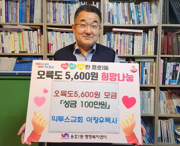 ºÎ»ê ³²±¸ ¿ëÈ£1µ¿¿¡ À§Ä¡ÇÑ ÀÍÅõ½º±³È¸ ÀÌâ¿ì ¸ñ»ç´Â Áö³ 12¿ù 15ÀÏ, ¡®¿ëÈ£1µ¿ ¿À·úµµ 5,600¿ø Èñ¸Á³ª´®»ç¾÷¡¯¿¡ ¼º±Ý 100¸¸ ¿øÀ» ÈÄ¿øÇß´Ù.