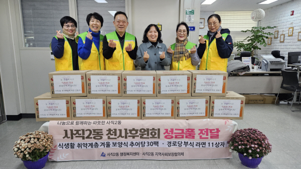 ºÎ»ê µ¿·¡±¸ »çÁ÷2µ¿ ÇàÁ¤º¹Áö¼¾ÅÍ(µ¿Àå ±è¼±Èñ)´Â Áö³ 10ÀÏ »çÁ÷2µ¿ õ»çÈÄ¿øÈ¸(ȸÀå ±èö±Ô)·ÎºÎÅÍ °Ü¿ï º¸¾ç½Ä Ãß¾îÅÁ(2~3ÀκÐ) 30¼¼Æ®¿Í ¶ó¸é(40°³ ÀÔ) 11¹Ú½º(ȯ°¡¾× 63¸¸ ¿ø)¸¦ Àü´Þ¹Þ¾Æ ¡®µû¶æÇÑ °Ü¿ï³ª±â Áö¿ø»ç¾÷¡¯À» ÃßÁøÇß´Ù°í ¹àÇû´Ù.