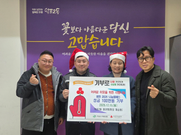 À̹ø ¼º±ÝÀº ´öÆ÷2µ¿ û³âȸ¿øµéÀÇ ÀÚ¹ßÀûÀÎ Âü¿©·Î ¸¶·ÃµÈ °ÍÀ¸·Î, Áö¿ª»çȸ ³ª´® ½ÇõÀÇ Àǹ̸¦ ´õÇß´Ù. ±âŹµÈ ¼º±ÝÀº ´öÆ÷2µ¿ Áö¿ª»çȸº¸ÀåÇùÀÇü CMS ±â±ÝÀ¸·Î Àû¸³µÇ¾î ³»³âµµ °ü³» Àú¼Òµæ °¡±¸¿Í º¹Áö »ç°¢Áö´ë¿¡ ³õÀÎ Ãë¾à°èÃþÀ» À§ÇÑ ´Ù¾çÇÑ Áö¿ø »ç¾÷¿¡ »ç¿ëµÉ ¿¹Á¤ÀÌ´Ù.