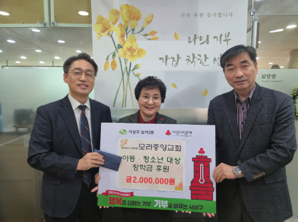 ºÎ»ê »ç»ó±¸ ¸ð¶ó3µ¿(µ¿Àå À̰èÀÓ)´Â Áö³ 12ÀÏ, ¸ð¶óÁß¾Ó±³È¸(¸ñ»ç À̼ºÈñ)·ÎºÎÅÍ Áö¿ª ÇлýµéÀ» À§ÇÑ ÀåÇÐ±Ý 200¸¸ ¿øÀ» Àü´Þ¹Þ¾Ò´Ù°í ¹àÇû´Ù.