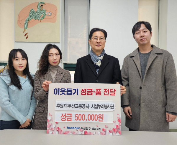 ºÎ»ê±³Åë°ø»ç ½Ã¼³´©¸®ºÀ»ç´Ü(ȸÀå ¹Ú½ÂÅÂ)Àº Áö³ 12¿ù 16ÀÏ ºÎ»êÁø±¸ ¹üõ2µ¿(µ¿Àå ÇÑÁ¤¹Î)¸¦ ¹æ¹®ÇØ Áö¿ª ³» ¾î·Á¿î ÀÌ¿ôµéÀ» Áö¿øÇϱâ À§ÇÑ ÀÌ¿ôµ½±â ¼º±Ý 50¸¸ ¿øÀ» ±âŹÇß´Ù.