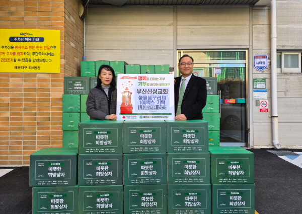 ÇØ¿î´ë±¸ ÁÂ4µ¿ ¼ÒÀç ºÎ»ê½Å¼º±³È¸(¸ñ»ç ±è¿ìÀÏ)´Â ¿¬¸»À» ¸Â¾Æ Áö¿ª ¼Ò¿Ü°èÃþÀ» À§ÇÑ ¡®µû¶æÇÑ Èñ¸Á»óÀÚ¡¯ 100¹Ú½º¸¦ ÁÂ4µ¿ ÇàÁ¤º¹Áö¼¾ÅÍ(µ¿Àå À̼öÁø)¿¡ ±âŹÇß´Ù.