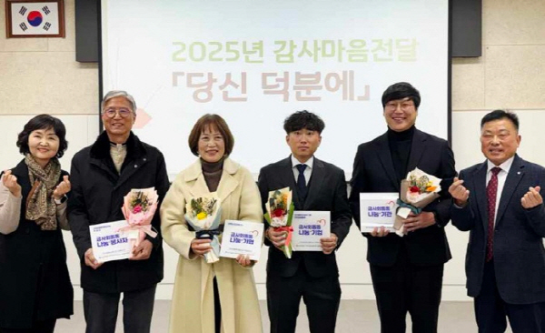 ºÎ»ê½Ã ±ÝÁ¤±¸ ±Ý»çȸµ¿µ¿ ÇàÁ¤º¹Áö¼¾ÅÍ¿Í Áö¿ª»çȸº¸ÀåÇùÀÇü(¹Î°£À§¿øÀå ¹èÀç¼®)´Â Áö³ 18ÀÏ 2025³â ÇÑ ÇØ µ¿¾È ±Ý»çȸµ¿µ¿ Áö¿ªº¹Áö ÁõÁø¿¡ ±â¿©ÇÑ ¡â±â¾÷(2°÷) - (ÁÖ)¿¡ÀÌÄ¡Á¦À̱׷ì+(ÁÖ)ÇüÁ¦¹°·ù, ¶ó¿Â³ë¸®±³À°(ÁÖ) ¡âÇù·Â±â°ü(1°÷) - ±ÝÁ¤±¸Á¾ÇÕ»çȸº¹Áö°ü ¡âÀÚ¿øºÀ»çÀÚ(1¸í) - ¹®¿µ¼®(µ¿ Áö»çÇù À§¿ø) µî 4°÷À» ¼±Á¤Çϰí À̵éÀÇ ³ë°í¸¦ °Ý·ÁÇϰíÀÚ °¨»çÆÐ¸¦ Àü´ÞÇÏ¿´´Ù.
