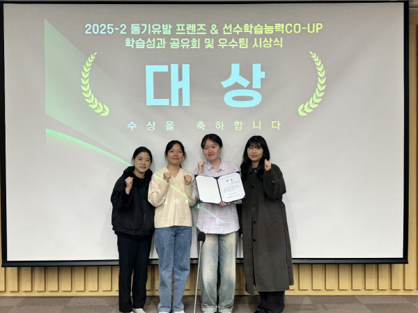 °£È£Çаú 4Çгâ Ȳ¿µÇý, ±èº¸°æ, ¹Ú¹ÌÇö ÇлýÀ¸·Î ±¸¼ºµÈ ÆÀÀº Áö³ 12ÀÏ °³ÃÖµÈ ¡®¼±¼öÇнÀ´É·Â CO-UP ÇÁ·Î±×·¥ ÇнÀ¼º°ú °øÀ¯È¸¡¯¿¡¼ ¿ì¼öÇÑ ¼º°ú¸¦ ÀÎÁ¤¹Þ¾Ò´Ù.