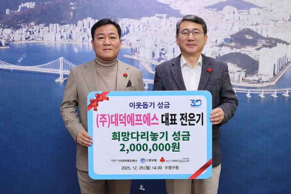 ºÎ»ê±¤¿ª½Ã ¼ö¿µ±¸(±¸Ã»Àå °­¼ºÅÂ)´Â 29ÀÏ.(¿ù) ±¸Ã»Àå½Ç¿¡¼­ ¼ö¿µ±¸ Èñ¸Á´Ù¸®³õ±â »ç¾÷ÀÇ ÀÏȯÀ¸·Î Àú¼Òµæ ¼¼´ë¸¦ ´ë»óÀ¸·Î Àü´ÞÇÒ ¼º±Ý 2¹é¸¸¿øÀ» ¢ß´ë´ö¿¡ÇÁ¿¡½º(´ëÇ¥ÀÌ»ç ÀüÀº±â) ·ÎºÎÅÍ ±âŹ ¹Þ¾Ò´Ù.