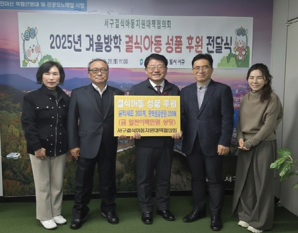 ¼±¸ °á½Ä¾Æµ¿Áö¿ø´ëÃ¥ÇùÀÇȸ(ȸÀå ¹éâ¿í)°ú ºÎ»ê´ëÇб³º´¿ø(¿øÀå Á¤¼º¿î) °ø°øº¸°ÇÀÇ·á»ç¾÷ÆÀ¿¡¼´Â 12¿ù 29ÀÏ °Ü¿ï¹æÇÐÀ» ¸Â¾Æ °á½Ä ¿ì·Á°¡ ÀÖ´Â ¼±¸ Àú¼Òµæ °¡Á¤ ¾Æµ¿ 200¸í¿¡°Ô À½½Ä ¼¼Æ® ¹× ÆíÀÇÁ¡ »óǰ±Ç(1,200¸¸ ¿ø »ó´ç)À» ÈÄ¿øÇÏ¿´´Ù.