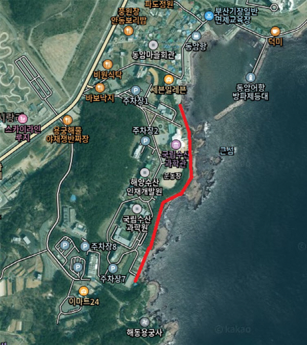 ÅëÁ¦ ±¸°£Àº ÇØµ¿¿ë±Ã»çºÎÅÍ µ¿¾Ï¸¶À»·Î À̾îÁö´Â ÇØ¾È·Î ÀϺηÎ, ÇØµ¿¿ë±Ã»ç ³» ¹æ»ýÅͺÎÅÍ ±¹¸³¼ö»ê°úÇпø ¿Ëº®À¸·Î À̾îÁö´Â ¾à 600m ±¸°£ÀÌ´Ù.