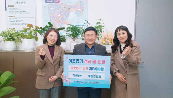 °¡¾ß1µ¿ ÅëÀåÇùÀÇȸ(ȸÀå ¹ÚÀ±Çö)´Â Áö³ 6ÀÏ ¿ì¸® ÁÖº¯¿¡ ¾î·Á¿òÀ» °Þ°í ÀÖ´Â Áö¿ªÁÖ¹ÎÀ» µ½±â À§ÇØ ¼º±Ý 30¸¸¿øÀ» ºÎ»êÁø±¸ °¡¾ß1µ¿(µ¿Àå ½Åº¸¹Î)¿¡ Àü´ÞÇß´Ù.