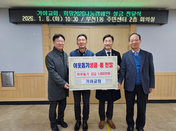 ºÎ»êÁø±¸ °¡¾ß±³È¸(À§ÀÓ¸ñ»ç ¹Ú³²±Ô)´Â 6ÀÏ Áö¿ªÀÇ ¾î·Á¿î ÀÌ¿ôÀ» À§ÇØ »ç¿ëÇØ ´Þ¶ó¸ç ÀÌ¿ôµ½±â ¼º±Ý 1,000¸¸¿øÀ» ºÎÀü1µ¿(µ¿Àå ¼³Ã¢¼ö)¿¡ ±âŹÇß´Ù.