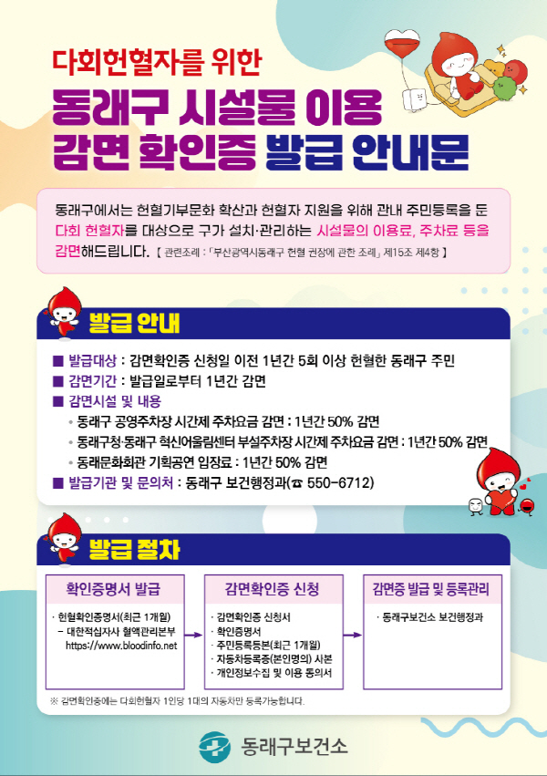 °¨¸é È®ÀÎÁõ ¼ÒÁöÀÚ´Â ¹ß±ÞÀϷκÎÅÍ 1³â°£ µ¿·¡±¸ °ø¿µÁÖÂ÷Àå, µ¿·¡±¸Ã», Çõ½Å¾î¿ï¸²¼¾ÅÍ ºÎ¼³ÁÖÂ÷Àå ½Ã°£Á¦ ÁÖÂ÷ ¿ä±ÝÀÇ 50%¸¦ °¨¸é¹ÞÀ» ¼ö ÀÖÀ¸¸ç, µ¿·¡¹®Èȸ°ü ±âȹ°ø¿¬ ÀÔÀå·áÀÇ 50%¸¦ °¨¸é¹Þ´Â´Ù.