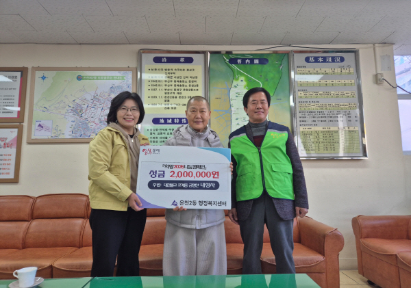ºÎ»ê µ¿·¡±¸ ¿Âõ2µ¿ ÇàÁ¤º¹Áö¼¾ÅÍ(µ¿Àå ±èºÐ¿Á)´Â Áö³ 8ÀÏ ¿Âõ2µ¿ ¼ÒÀç ´ëÇѺұ³ Á¶°èÁ¾ ±ÝÁ¤»ê ³»¼º»ç(ÁÖÁö ö¿ì½º´Ô)·ÎºÎÅÍ ÀÌ¿ôµ½±â ¼º±Ý 200¸¸ ¿øÀ» ±âŹ¹Þ¾Ò´Ù°í ¹àÇû´Ù.