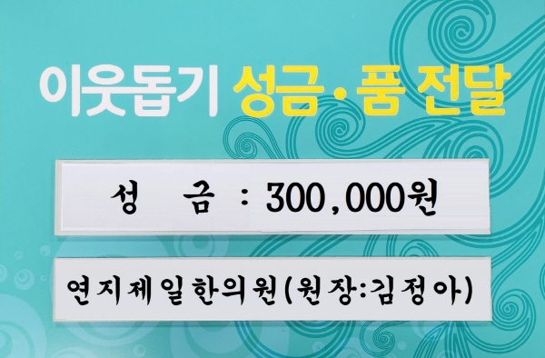 ¿¬Áöµ¿ ¼ÒÀç ¿¬ÁöÁ¦ÀÏÇÑÀÇ¿ø(´ëÇ¥¿øÀå ±èÁ¤¾Æ)Àº Áö³ 19ÀÏ, ÃÊÀ¾µ¿ Áֹμ¾ÅÍ(µ¿Àå Á¤°£È£)¿¡ ¼º±Ý 30¸¸¿øÀ» Àü´ÞÇß´Ù.