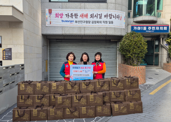 ºÎ»êÁø±¸ Çѱ¹ÀÚÀ¯ÃÑ¿¬¸Í °¡¾ß1µ¿À§¿øÈ¸(À§¿øÀå ÀåÇý¼÷)´Â Áö³ 1¿ù 20ÀÏ, ºÎ»êÁø±¸ °¡¾ß1µ¿(µ¿Àå ½Åº¸¹Î)À» ¹æ¹®ÇÏ¿© 300¸¸ ¿ø »ó´çÀÇ ¾î¹¬Á¾ÇÕ¼¼Æ®¸¦ Àü´ÞÇÏ¿´´Ù.