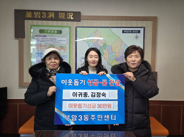 ºÎ»êÁø±¸ ºÎ¾Ï3µ¿ ÅëÀåÇùÀÇȸ ȸÀå À̱ÍÁ¾, Ãѹ« ±èÁ¤¼÷Àº 1¿ù 27ÀÏ Èñ¸Á2026 ³ª´®Ä·ÆäÀÎ ÀÌ¿ôµ½±â ¼º±Ý 30¸¸ ¿øÀ» ºÎ¾Ï3µ¿ Áֹμ¾ÅÍ(µ¿Àå ÇÏÁ¤Èñ)¿¡ ±âŹÇÏ¿´´Ù.