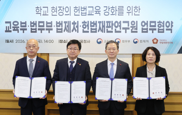30ÀÏ ¼­¿ï Á¾·Î±¸ Á¤ºÎ¼­¿ïû»ç¿¡¼­ ¿­¸° Çб³ ÇöÀåÀÇ Çå¹ý±³À° °­È­¸¦ À§ÇÑ ±³À°ºÎ¡¤¹ý¹«ºÎ¡¤¹ýÁ¦Ã³¡¤Çå¹ýÀçÆÇ¿¬±¸¿ø ¾÷¹«Çù¾à¿¡¼­ Á¶¿øÃ¶ ¹ýÁ¦Ã³Àå(¿ÞÂʺÎÅÍ), ÃÖ±³Áø ±³À°ºÎ Àå°ü, Á¤¼ºÈ£ ¹ý¹«ºÎ Àå°ü, Áö¼º¼ö Çå¹ýÀçÆÇ¿¬±¸¿øÀåÀÌ Çù¾à¼­¸¦ µé°í ±â³ä ÃÔ¿µÀ» Çϰí ÀÖ´Ù. ¿¬ÇÕ´º½º