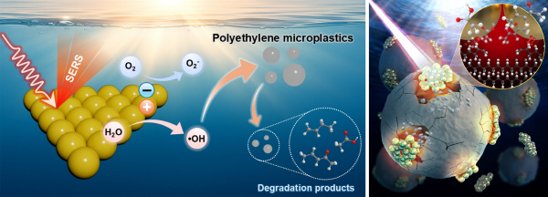 À̹ø ¿¬±¸¿¡¼´Â ±Ý ³ª³ëÀÔÀÚ Å¬·¯½ºÅÍ(Au nanoparticle clusters, Au NPCs)¸¦ ÀÌ¿ëÇØ ¼öÁß È¯°æ¿¡¼ Æú¸®¿¡Æ¿·»(PE) ¹Ì¼¼ÇÃ¶ó½ºÆ½À» °¡½Ã±¤¼± Á¶°Ç¿¡¼ ºÐÇØÇϰí, ºÐÇØ °úÁ¤À» Ç¥¸éÁõ° ¶ó¸¸»ê¶õ(SERS) ±â¹ýÀ» ÅëÇØ ½Ç½Ã°£À¸·Î ÃßÀûÇß´Ù.