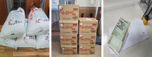 Áö³ 1¿ù ½Å¼±µ¿ ÇàÁ¤º¹Áö¼¾ÅÍ(µ¿Àå º¯¿ø°æ)¿¡´Â À͸íÀÇ ±âºÎÀÚ°¡ º¸³½ ½Ò°ú ¶ó¸é¹Ú½º°¡ ¹è´Þ µÇ¾ú´Ù. ÀÌ ±âºÎÀÚµéÀº Æò¼Ò¿¡µµ ½Ò°ú ¶ó¸éÀ» º¸³»¿À¸ç ²ÙÁØÈ÷ ³ª´®À» ½ÇÃµÇØ ¿Ô´Ù. ƯÈ÷ À̹ø¿¡´Â ¶Ç ´Ù¸¥ À͸íÀÇ ±âºÎÀÚ°¡ ¡°ÀÌ¿ôµ½±â ¼º±ÝÀ¸·Î ½á´Þ¶ó¡±´Â ¸»°ú ÇÔ²² Çö±ÝÀ» ¸Ã±â°í »ç¶óÁ® °¨µ¿À» ´õÇß´Ù.