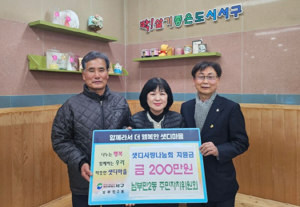 ºÎ»ê ¼±¸ ³²ºÎ¹Î2µ¿ ÁÖ¹ÎÀÚÄ¡À§¿øÈ¸(À§¿øÀå Á¤¼ºÅÂ)´Â 13ÀÏ, »ûµð»ç¶û³ª´®È¸¿¡ »ûµðü·Â´Ü·ÃÀå ¿î¿µ¼öÀÍ±Ý Áß ÀϺÎÀÎ 200¸¸ ¿øÀ» Áö¿øÇÏ¿´´Ù. »ûµð»ç¶û³ª´®È¸´Â ¸íÀý ¹é¹ÌÁö¿ø, ¡¸³²½ºÅÍÄ¡¡¹(¹Ø¹ÝÂù Áö¿ø) µî °ü³» Ãë¾à°èÃþÀ» À§ÇØ ´Ù¾çÇÑ º¹Áö»ç¾÷À» ÃßÁøÇϰí ÀÖÀ¸¸ç, ÀÌ¿¡ µ¿ÂüÇϰíÀÚ ÇÏ´Â ÃëÁöÀÌ´Ù. Á¤¼ºÅ ÁÖ¹ÎÀÚÄ¡À§¿øÀåÀº ¡°ÁÖ¹ÎÀÌ ÇÔ²² ¸¸µç ¼öÀÍÀ¸·Î ´Ù½Ã ÁÖ¹ÎÀ» À§ÇØ ¾²´Â ¼±¼øÈ¯ ±¸Á¶¸¦ À̾¸ç, ¾ÕÀ¸·Îµµ Áö¿ª »çȸ¿Í »ó»ýÇÏ´Â ³²ºÎ¹Î2µ¿ ÁÖ¹ÎÀÚġȸ¸¦ ½ÇÇöÇØ ³ª°¡°Ú´Ù¡±¶ó°í ¹àÇû´Ù.