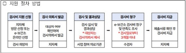 °Ë»ç Èñ¸ÁÀÚ´Â ÁÖ¼ÒÁö °üÇÒ º¸°Ç¼Ò ¹æ¹® ½Åû ¶Ç´Â e-º¸°Ç¼Ò ¿Â¶óÀÎ ½Åû(e-health.go.kr)ÀÌ °¡´ÉÇÏ¸ç º¸°Ç¼Ò¿¡¼ ¹ß±Þ¹ÞÀº °Ë»çÀÇ·Ú¼¸¦ »ç¾÷ Âü¿© ÀÇ·á±â°ü¿¡ Á¦Ãâ ÈÄ °¡ÀÓ·Â °Ë»ç¸¦ ¹Þ°í °Ë»çÀϷκÎÅÍ 3°³¿ù À̳» º¸°Ç¼Ò¿¡ û±¸Çϸé Áö¿ø¹ÞÀ» ¼ö ÀÖ´Ù. ƯÈ÷, ÀӽаèȹÀÌ ÀÖ´Â ºÎºÎ¶ó¸é ³ÀÓ ¿¹¹æ°ú °Ç°ÇÑ Àӽš¤Ãâ»êÀ» À§ÇÑ °Ë»ç ºñ¿ëÀ» Áö¿ø ¹ÞÀ» ¼ö ÀÖ´Â ÁÁÀº ±âȸÀÌ´Ù.