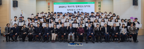 ºÎ»ê ¿µµµ±¸ (Àç)Çູ¿µµµÀåÇÐȸ(ÀÌ»çÀå ÃÖ¼ø¿ë)´Â Áö³ 20ÀÏ ¿µµµ±¸Ã» ´ë°´ç¿¡¼ ÀåÇлý°ú Çкθð, ±³À° °ü°èÀÚ µî 200¿© ¸íÀÌ Âü¼®ÇÑ °¡¿îµ¥ ¡®2026³â Á¦17ȸ ÀåÇÐÁõ¼ ¼ö¿©½Ä¡¯À» ¼ºÈ²¸®¿¡ °³ÃÖÇß´Ù°í ¹àÇû´Ù.