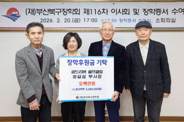 ºÎ»ê ºÏ±¸´Â °ñµå¸®¹ö °ñÇÁŬ·´(»ç»ó±¸ ¾ö±Ãµ¿ ¼ÒÀç) Á¤±æ½É ºÎ»çÀåÀÌ (Àç)ºÎ»êºÏ±¸ÀåÇÐȸ¿¡ ÀåÇбâ±Ý 500¸¸ ¿øÀ» ±âŹÇß´Ù°í ¹àÇû´Ù.