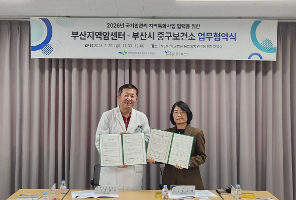 Áß±¸ º¸°Ç¼Ò´Â Áö³ 20ÀÏ ºÎ»ê´ëÇб³º´¿ø(ºÎ»êÁö¿ª¾Ï¼¾ÅÍ)°ú ±¹°¡¾Ï°ü¸® »ç¾÷ÀÇ È°¼ºÈ¸¦ À§ÇÑ ¾÷¹«Çù¾àÀ» ºÎ»êÁö¿ª¾Ï¼¾ÅÍ ±³À°½Ç¿¡¼ ü°áÇß´Ù°í ¹àÇû´Ù.