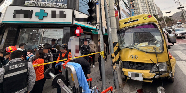 ºÎ»ê ºÏ±¸¿¡¼­ À¯Ä¡¿ø ¹ö½º°¡ Àü¹æÀÇ Â÷·®À» µéÀ̹޴ »ç°í°¡ ¹ß»ýÇß´Ù. ´ç½Ã ž½ÂÇß´ø ¾î¸°ÀÌ 2¸íÀº Å« ºÎ»óÀº ¾øÀ¸³ª, Àü¹æ ½ºÅ¸·º½º Â÷·®¿¡ Ÿ°í ÀÖ´ø 80´ë°¡ Áß»óÀÌ ÃßÁ¤µÇ´Â µî 5¸íÀÌ ´ÙÃÆ´Ù.