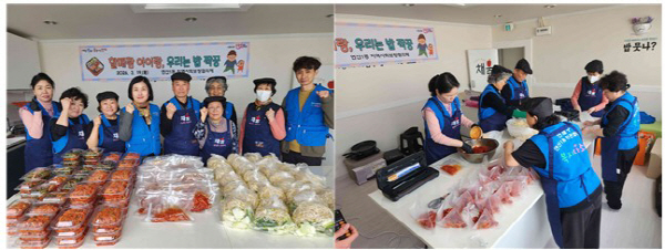 À̳¯ Âü¿©ÀÚµéÀº ¼Ò°í±â±¹ ¹ÐŰƮ¿Í ¿¹«±èÄ¡, ¹«Ã¤¸¦ Á÷Á¢ ¸¸µé¾î ´ë»ó °¡Á¤¿¡ Àü´ÞÇÏ¸ç ¾ÈºÎ¸¦ »ìÆñ´Ù. ƯÈ÷ ¼Ò°í±â±¹À» ¹ÐŰƮ ÇüÅ·ΠÁ¦ÀÛÇØ Á¶¸®°¡ °£ÆíÇϰí, º¸°ü°ú Ȱ¿ëÀÌ ½¬¿ö ½Ä»ç Áغñ ºÎ´ãÀ» ´ú ¼ö ÀÖ´Â ÀåÁ¡À» ´õÇß´Ù.
