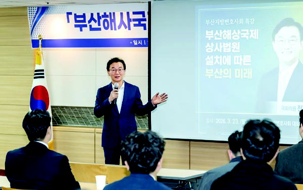 ´õºÒ¾î¹ÎÁÖ´ç ÀüÀç¼ö(ºÎ»ê ºÏ°©) ÀÇ¿øÀÌ 23ÀÏ ºÎ»ê ¿¬Á¦±¸ ºÎ»êº¯È£»çȸ ´ëȸÀǽǿ¡¼­ ¡®ºÎ»êÇØ»ç±¹Á¦»ó»ç¹ý¿ø ¼³Ä¡¿¡ µû¸¥ ºÎ»êÀÇ ¹Ì·¡¡¯¸¦ ÁÖÁ¦·Î °­¿¬Çϰí ÀÖ´Ù. À̳¯ ºÎ»êº¯È£»çȸ´Â Àü ÀÇ¿øÀÌ ÇØ»ç¹ý¿øÀ» ºÎ»ê¿¡ À¯Ä¡ÇÑ °ø·Î¸¦ ÀÎÁ¤ÇØ °¨»çÆÐ¸¦ Àü´ÞÇß´Ù. ÀÌ¿øÁØ ±âÀÚ