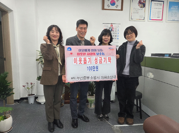 ºÎ»êÁßºÎ¼Ò¹æ¼ ÀÇ¿ë¼Ò¹æ´ë(³²¼º´ëÀå À̺À¼®, ¿©¼º´ëÀå ½É°æ¶õ)°¡ Áö¿ª ³» ¾î·Á¿î ÀÌ¿ôÀ» µ½±â À§ÇØ Áö³ 23ÀÏ º¸¼öµ¿ ÇàÁ¤º¹Áö¼¾ÅÍ(µ¿Àå ½Å°æ¾Ö)¿¡ ¼º±ÝÀ» ±âŹÇß´Ù.