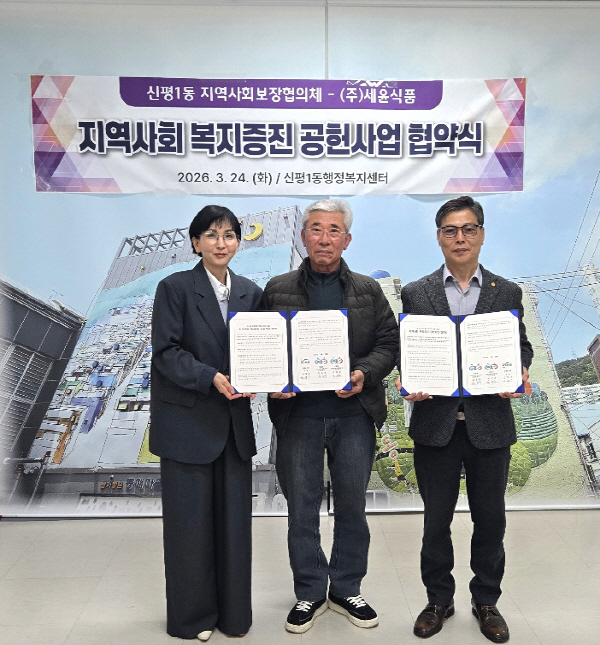 »çÇϱ¸ ½ÅÆò1µ¿ Áö¿ª»çȸº¸ÀåÇùÀÇü(À§¿øÀå ¹ÚÈñÁØ)´Â Áö³ 3¿ù 24ÀÏ ¢ß¼¼À±½Äǰ(´ëÇ¥ ±è¿µ¼ö)°ú ¡®Áö¿ª»çȸº¹ÁöÁõÁø°øÇå»ç¾÷ Çù¾à½Ä¡¯À» °³ÃÖÇϰí, ¾î·Á¿î ÀÌ¿ôÀ» À§ÇÑ ¸Ô°Å¸® Áö¿ø»ç¾÷À» »óÈ£ Çù·ÂÇØ Àû±Ø ÃßÁøÇϱâ·Î ÇÕÀÇÇß´Ù.