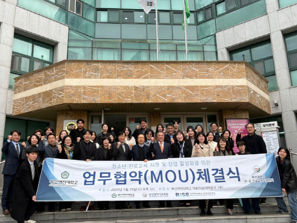 ºÎ»ê±¤¿ª½Ã 16°³ ±¸¡¤±º Áø·Î±³À°Áö¿ø¼¾ÅÍ¿Í ºÎ»ê¿©ÀÚ´ëÇб³´Â 3¿ù 25ÀÏ ¿ÀÈÄ 3½Ã, ºÎ»ê¿©ÀÚ´ëÇб³ ´ëÇк»ºÎ 1Ãþ ´ëȸÀǽǿ¡¼ û¼Ò³â Áø·Î±³À° ¹× â¾÷±³À° Ȱ¼ºÈ¸¦ À§ÇÑ ¾÷¹«Çù¾àÀ» ü°áÇß´Ù.