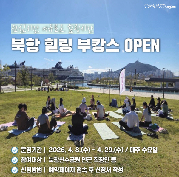 ºÎ»ê½Ã¼³°ø´Ü(ÀÌ»çÀå À̼º¸²)Àº ¿À´Â 4¿ù 8ÀϺÎÅÍ 4¿ù 29ÀϱîÁö ¸ÅÁÖ ¼ö¿äÀÏ, ºÏÇ×Ä£¼ö°ø¿ø¿¡¼ Àα٠Á÷ÀåÀÎ µîÀ» ´ë»óÀ¸·Î ¡®ºÏÇ× Èú¸µ ºÎIJ½º ÇÁ·Î±×·¥¡¯À» ¿î¿µÇÑ´Ù°í ¹àÇû´Ù.