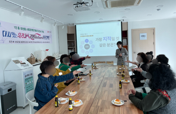 ºÎ»ê ±ÝÁ¤±¸ ºÎ°î1µ¿Àº Áö³ 3¿ù 26ÀÏ, »çȸÀû °ü°è°¡ ÁÙ¾îµé±â ½¬¿î ÁßÀå³â 1ÀÎ °¡±¸¸¦ ´ë»óÀ¸·Î ÀÌ¿ô °£ »çȸ°ü°è¸Á Çü¼º°ú Á¤¼ Áö¿øÀ» À§ÇÑ ¡¸¸®º»(RE:BORN)¡¹ ÇÁ·Î±×·¥ 1ȸ±â¸¦ ÁøÇàÇß´Ù.