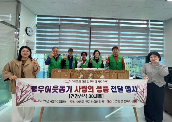 ºÎ»ê±¤¿ª½Ã ¼ö¿µ±¸ ¼ö¿µµ¿ ÇàÁ¤º¹Áö¼¾ÅÍ(µ¿Àå °µÎ¸®)´Â Áö³ 10ÀÏ ¹Î°£»çȸ¾ÈÀü¸Á(À§¿øÀå ¾çÁ¾±Ç)¿¡¼ °ü³» Àú¼Òµæ Ȧ·Î ¾î¸£½ÅµéÀ» À§ÇØ ¿µ¾ç °¡µæÇÑ ¼±½Ä 30¼¼Æ®(ȯ°¡¾× 60¸¸ ¿ø »ó´ç)¸¦ Áö¿øÇÏ¿´´Ù°í ¹àÇû´Ù.