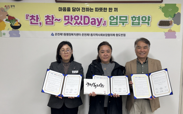 ºÎ»ê µ¿·¡±¸ ¿Âõ1µ¿ ÇàÁ¤º¹Áö¼¾ÅÍ(µ¿Àå Á¤Èñ¼÷)¿Í Áö¿ª»çȸº¸ÀåÇùÀÇü(¹Î°£À§¿øÀå º¯µ¿¼ö)´Â Áö³ 14ÀÏ °ü³» ¿ä½Ä¾÷¼ÒÀÎ Ç×µµ¹ÝÁ¡(´ëÇ¥ ¼±â´ö)°ú¡®Âù, Âü~ ¸ÀÀÖDay¡¯»ç¾÷ ÈÄ¿ø Çù¾àÀ» ü°áÇß´Ù°í 15ÀÏ ¹àÇû´Ù.