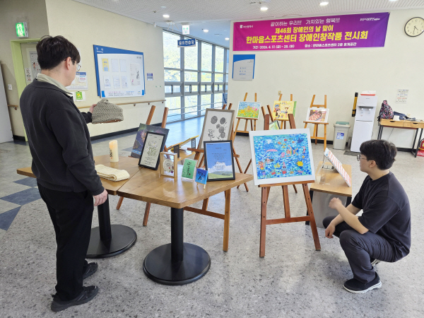 ºÎ»ê ÇѸ¶À½½ºÆ÷Ã÷¼¾ÅÍ¿¡ Àå¾ÖÀεéÀÇ ¼Õ³¡¿¡¼ ¿Ï¼ºµÈ ÀÛǰµéÀÌ ¸ð¿´´Ù.