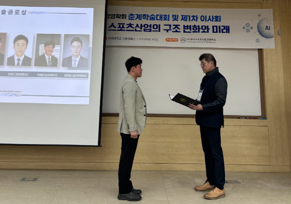 µ¿¸í´ë Ã౸¡¤½ºÆ÷Ã÷»ê¾÷Çаú Áø´ë±Ù ±³¼ö°¡ Áö³ 11ÀÏ 2026³âµµ (»ç)Çѱ¹½ºÆ÷Ã÷»ê¾÷°æ¿µÇÐȸ(ȸÀå ÀÌÁ¤ÇÐ) Çмú°ø·Î»óÀ» ¼ö»óÇß´Ù.