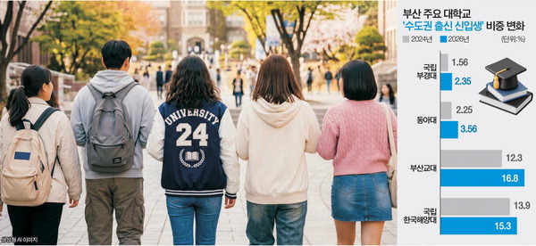 ¹Ý¸é ºÎ»êÁö¿ª ÀϺΠ´ëÇе鿡¼± 2024Çг⵵ ´ëºñ ¿ÃÇØ ¼öµµ±Ç ½ÅÀÔ»ý ºñÁßÀÌ Áõ°¡ÇÑ °ÍÀ¸·Î ³ªÅ¸³µ´Ù. ±¹¸³ºÎ°æ´ë´Â 1.56%¡æ 2.35%, µ¿¾Æ´ë´Â 2.25%¡æ3.56%, ±¹¸³Çѱ¹Çؾç´ë´Â 13.9%¡æ15.3%, ºÎ»ê±³´ë´Â 12.3%¡æ16.8%·Î ´Ã¾ú´Ù.