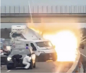 ÁÖº¯ ¿îÀüÀÚµéÀÌ ÃÔ¿µÇÑ ¿µ»óÀ» º¸¸é Çö±Ý ¼ö¼ÛÂ÷ ÁÖº¯¿¡ ¼¼¿öÁø Â÷·®¿¡¼ Èò»ö ÀÛ¾÷º¹ µîÀ» ÀÔ°í º¹¸éÀ» ¾´ ³²¼º 6¸í ÀÌ»óÀÌ ³»·È´Ù. ÀϺδ Ãѱ⸦ µé°í Â÷·® µÚ¿¡ ¸öÀ» ¼û°åÀ¸¸ç, ´Ù¸¥ ±«ÇѵéÀº Çö±Ý ¼ö¼ÛÂ÷·Î Á¢±ÙÇß´Ù. ÀÌ¾î ¿µÈÀÇ ÇÑ Àå¸éó·³ Æø¹ß°ú ÇÔ²² ¿¬±â¿Í ÆÄÆíÀÌ Çϴ÷Π¼Ú±¸Ä¡¸ç Çö±Ý ¼ö¼ÛÂ÷ µÞ¹®°ú ÁöºØÀÌ Âõ°Ü³ª°¬´Ù. ±«ÇѵéÀÌ ¼ö¼ÛÂ÷ ³»¿ë¹° ÀϺθ¦ ½Â¿ëÂ÷·Î ¿Å°Ü ½Æ´Â µíÇÑ ¸ð½Àµµ º¸¿´´Ù.