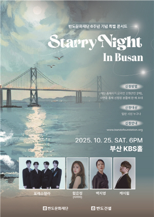 ¹Ýµµ°Ç¼³ÀÌ ¼³¸³ÇÑ ºñ¿µ¸® °øÀ͹ýÀÎ ¹Ýµµ¹®ÈÀç´Ü(ÀÌ»çÀå ±ÇÈ«»ç)ÀÌ ¼³¸³ 6ÁÖ³âÀ» ¸Â¾Æ ´Ù°¡¿À´Â 10¿ù 25ÀÏ(Åä) ¿ÀÈÄ 6½Ã ºÎ»ê KBSȦ¿¡¼ ¼Ò¿Ü°èÃþÀ» Æ÷ÇÔÇÑ ½Ã¹Î ¹× ÈÄ¿ø»ç °¡Á·°ú ÇÔ²²Çϴ Ưº° ÄܼƮ¡®Starry Night In Busan¡¯¸¦ °³ÃÖÇÑ´Ù.