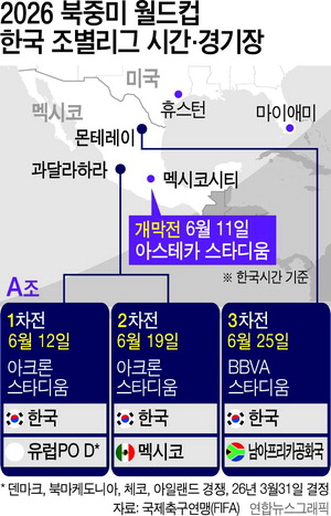 Çѱ¹ Ã౸´ëÇ¥ÆÀÀÌ ³»³â¿¡ ¿¸®´Â ¡®2026 ±¹Á¦Ã౸¿¬¸Í(FIFA) ºÏÁß¹Ì ¿ùµåÄÅ¡¯¿¡¼ ¸ß½ÃÄÚ¡¤³²¾ÆÇÁ¸®Ä«°øÈ±¹¡¤À¯·´ Ç÷¹ÀÌ¿ÀÇÁ(PO) ½ÂÀÚ¿Í 32° ÁøÃâÀ» ´ÙÅ÷´Ù. ¿ì½Â È帱¹À» ÇÇÇÑ °ÍÀº ºñ±³Àû Çà¿îÀÌÁö¸¸ °°Àº Á¶¿¡ Æí¼ºµÈ ¸ß½ÃÄÚ¿Í À¯·´ÆÀÀÌ 32° ÁøÃâÀÇ º¯¼ö°¡ µÉ °ÍÀ¸·Î º¸ÀδÙ.
