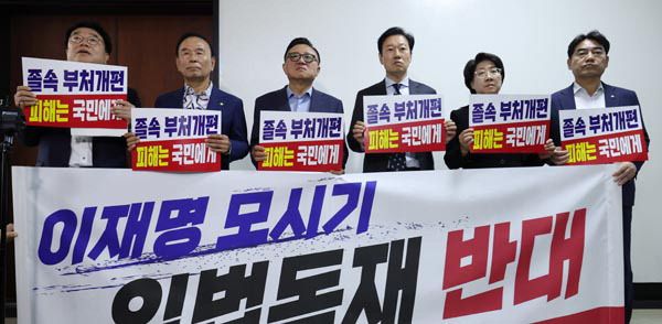 ±¹È¸ ÇàÁ¤¾ÈÀüÀ§¿øÈ¸ ¼Ò¼Ó ±¹¹ÎÀÇÈû ¼¹ü¼ö À̼º±Ç ÀÇ¿ø µîÀÌ 22ÀÏ ±¹È¸ Çà¾ÈÀ§ ȸÀÇÀå ¾Õ¿¡¼ ´õºÒ¾î¹ÎÁÖ´çÀÇ Á¤ºÎÁ¶Á÷¹ý ÀϺΰ³Á¤¾È 󸮸¦ ±ÔźÇϰí ÀÖ´Ù. ±¹È¸ Çà¾ÈÀ§´Â À̳¯ ÀüüȸÀǸ¦ ¿¾î °ËÂûû ÆóÁö¿Í °æÁ¦ºÎó °³Æí µîÀ» »À´ë·Î ÇÑ Á¤ºÎÁ¶Á÷¹ý °³Á¤¾ÈÀ» ¹ÎÁÖ´ç ÁÖµµ·Î ÀǰáÇß´Ù.