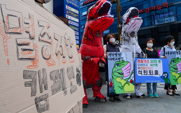 ºÎ»êÁø±¸ µ¿º¸ÇÁ¶óÀÚ ¾Õ¿¡¼­ ȯ°æ¿îµ¿¿¬ÇÕ ÁÖÃÖ·Î ±âÈĺ¯È­¿¡ ÀÇÇØ ¸êÁ¾µÈ ¹Ù ÀÖ´Â °ø·æÀÎÇüÅ» ÆÛÆ÷¸Õ½º¿Í ÇÔ²² Å»¼®Åº, ±âÈÄÀ§±â ±Øº¹ Ä·ÆäÀÎÀ» Çϰí ÀÖ´Ù. ÀÌ¿øÁØ ±âÀÚ