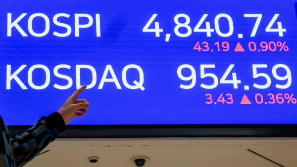 Áö³­ 16ÀÏ ¼­¿ï Áß±¸ ¿ì¸®ÀºÇà º»Á¡ ·Îºñ ±ÝÀ¶Àü±¤ÆÇ¿¡ ÄÚ½ºÇǰ¡ Ç¥½ÃµÅ ÀÖ´Ù. ÄÚ½ºÇÇ´Â 4840.74¿¡ ÀåÀ» ¸¶°¨Çß´Ù. ¿¬ÇÕ´º½º