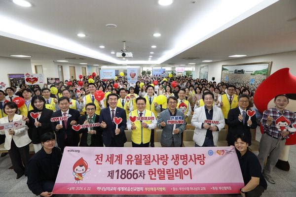 Çϳª´ÔÀDZ³È¸ ¼¼°èº¹À½¼±±³Çùȸ°¡ ¡®Àü ¼¼°è À¯¿ùÀý»ç¶û »ý¸í»ç¶û ÇåÇ÷¸±·¹ÀÌ¡¯(»çÁø)¸¦ Áö³ 22ÀÏ ºÎ»ê¿¡¼µµ °³ÃÖÇß´Ù. ¡®ºÎ»ê¼ö¿µ Çϳª´ÔÀÇ ±³È¸¡¯¿¡¼ ¿¸° 1866Â÷ ÇåÇ÷¸±·¹ÀÌ¿¡´Â ¾à 400¸íÀÌ Âü¿©Çß´Ù. ÀÌ Áß Á¶°Ç¿¡ ¸Â´Â 130¸íÀÌ ÇåÇ÷À» ¿Ï·áÇØ ÃÑ 5¸¸2000§¢ÀÇ Ç÷¾×À» ±âºÎÇß´Ù.