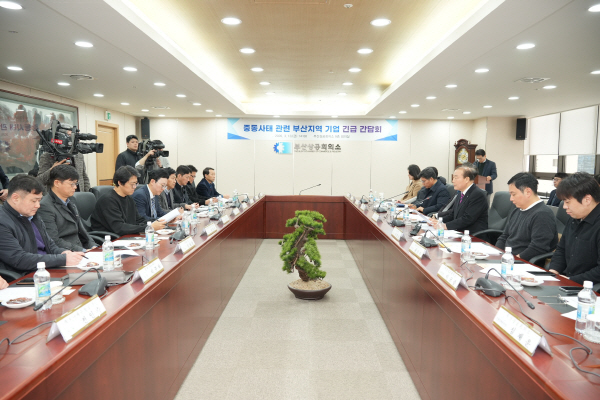 13ÀÏ ºÎ»ê»ó°øÈ¸ÀÇ¼Ò 8Ãþ ȸÀǽǿ¡¼­ ¾çÀç»ý ȸÀå ÁÖÀç·Î ¡®Áßµ¿»çÅ °ü·Ã ºÎ»êÁö¿ª ±â¾÷ ±ä±Þ °£´ãȸ¡¯°¡ ¿­¸° ¸ð½À. ºÎ»ê»ó°øÈ¸ÀÇ¼Ò Á¦°ø